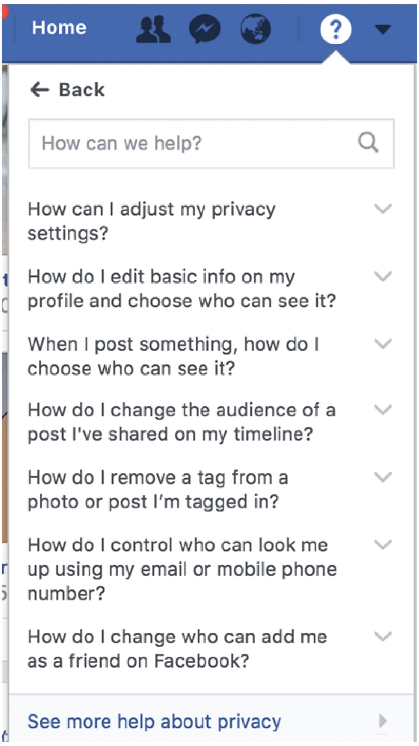 Simply click on the “Help Center” and scroll to “Privacy”.